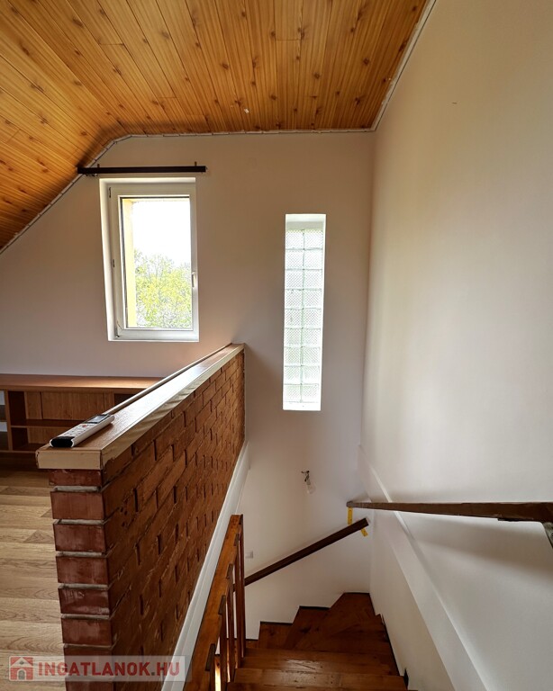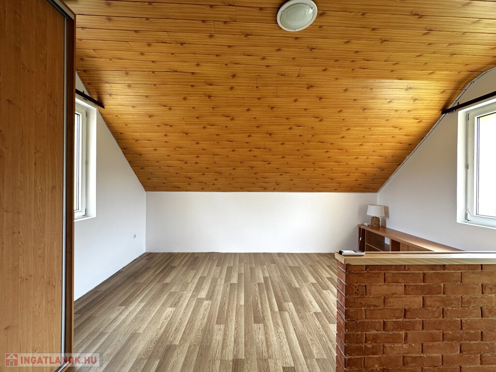 A telek 705 m2, a 2000-ben épült téglaház tetőtér beépítéses, 70 m2 hasznos alapterületű.