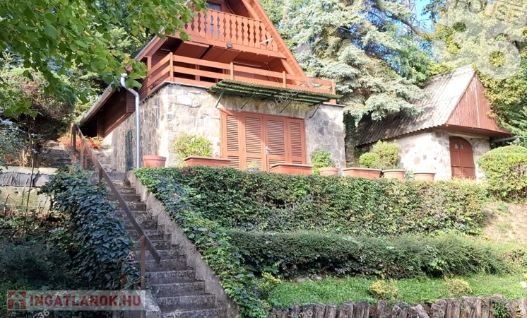 Leányfalun a hegyoldalban eladó egy hétvégi ház a Dunakanyar panorámájával!