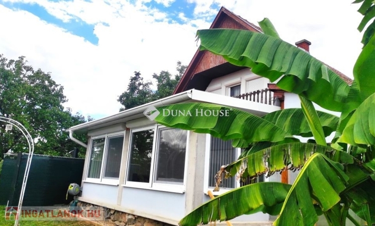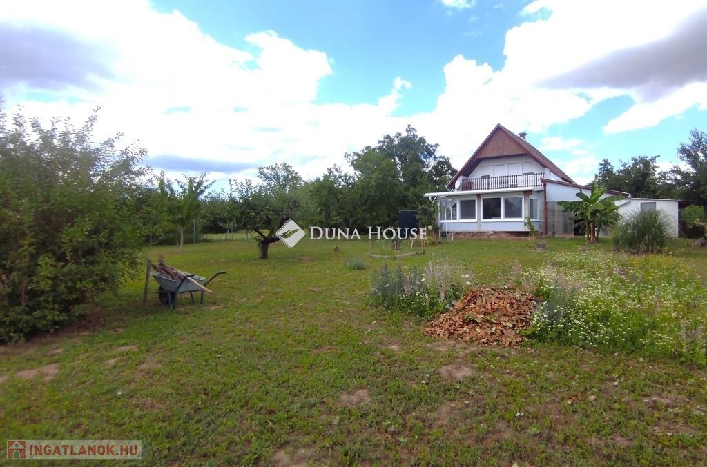 Mohácson a szőlőhegyen ház eladó!Dél-Baranyában Mohács közelében eladó ez a bájos kis nyaraló. Tulajdonosai amikor 20 évvel ezelőtt megvásárolták ezt a házat, hozzépítettek egy 24m2-es nappalit. Ez a helyiség adja meg az egész ház hangulatát. Nagy üveg tolóablakai télen-nyáron biztosítják a kitűnő fényviszonyokat. Innen nyílik egy újabb szoba, konyha, fürdő wc-vel. Ezek a helyiségek vannak a földszinten és ha felmegyünk a falépcsőn a tetőtérben még két szoba található. Mindkettőből ajtó nyílik a fenti teraszra. Az 5m2-es szép kilátásunk van az udvarra, és a távoli Dunára is. Az északi oldalon az utca felől beállhatunk az a fedett garázsba ami közvetlen a ház falához csatlakozik. A ház téglából épült, és szigetelt. A tető cserépfedéses, illetve a hozzáépítésnél szigetelt lemezfedéssel oldották meg. A nyílászárók műanyagok ,a burkolatok a földszinten kerámia, az emeleten pedig laminált padló. Fűtését egy kandalló biztosítja. Az ingatlan jól megközelíthető télen-nyáron is. Ha megtettszett vagy további kérdései lennének hívjon!