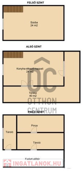 Az alsó szint 27 m2, ahol 2 tároló és egy pince található.