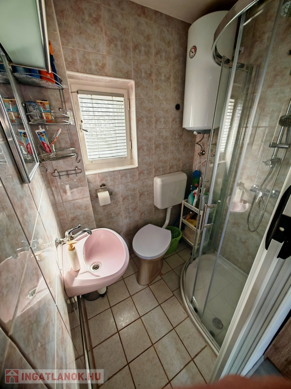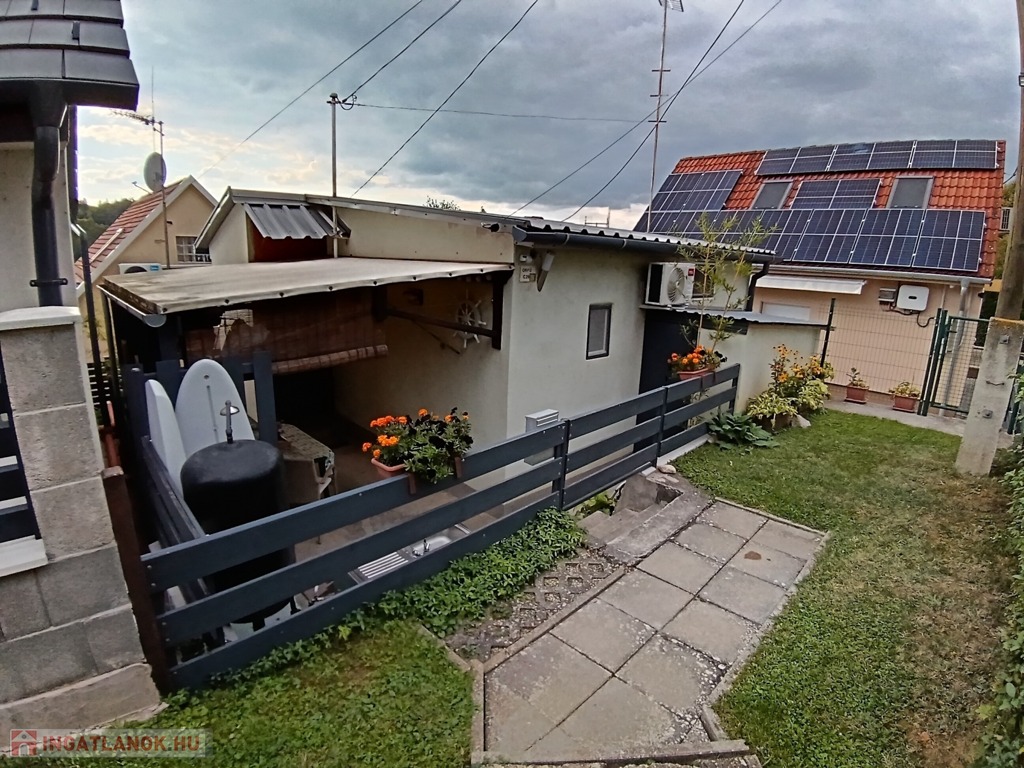 A házban szoba, konyha, fürdő-WC, valamint egy kis étkezőként és szobaként használható helyiség kapott helyet. A fűtés-hűtést új klímaberendezés biztosítja, a melegvízről bojler gondoskodik. A tetőt tavaly cserélték és szigetelték. Gázcsonk az udvaron belül.