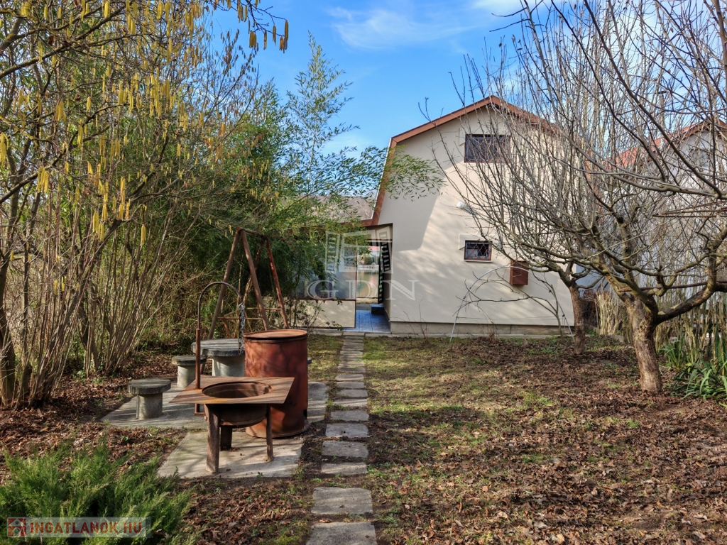 A telek sarok telek, ezért szerencsés módon, csak egy oldalról van csak szomszéd. Privát életteret biztosít. A kertben zuhanyozási lehetőség, sütögető, és bogrács is helyet kapott.