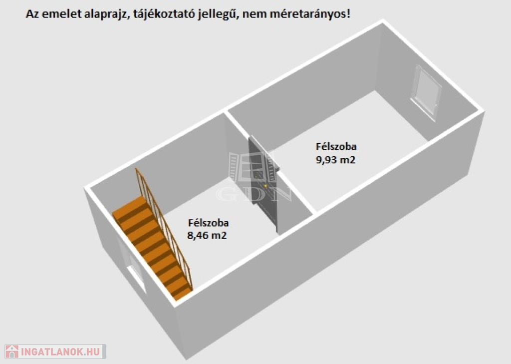 Az emeleten, egymásba nyíló 2 db félszobát találunk.