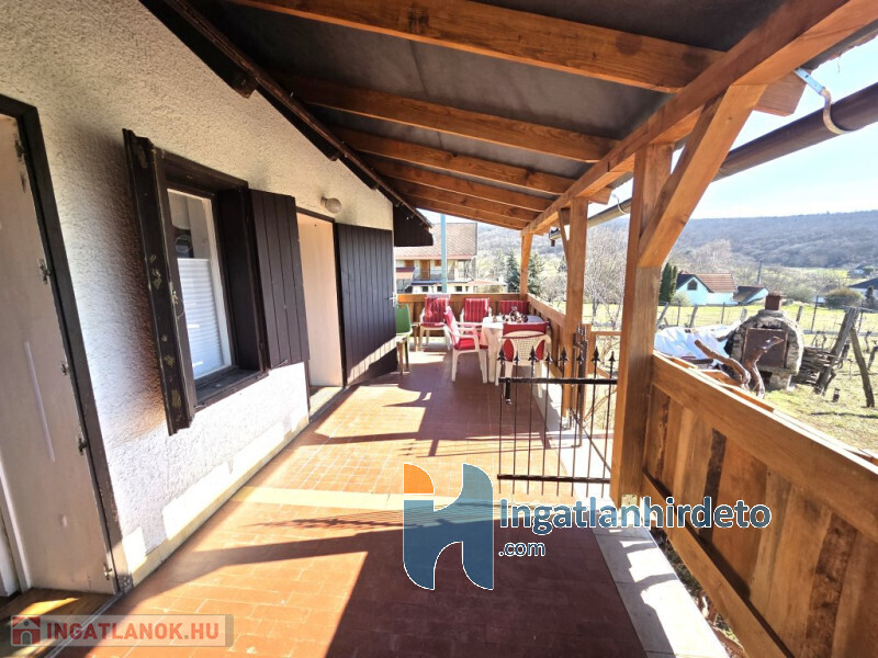 Elhelyezkedése: Mezőgazdasági övezet Emeleti elhelyezkedés: Földszinten Tájolása: Déli tájolású Állapota: Jó Komfort besorolása: Komfortos Építési éve: 1980 Alapterülete: 65 m2 Telekterülete: 2 024 m2 Szobák száma: 1 + 2 szoba Közművek: Víz, Villany Vízellátás: Vezetékes víz Melegvíz-ellátás: Villanybojler Áramellátás: 230V Fűtés módja: Fa Fűtés típusa: Kandalló Homlokzat állapot: Jó Építési mód: Tégla Tető formája: Magas Tető anyaga: Pala Parkolási lehetőség: Telken Kilátás: Hegyi panoráma Jellemzői: Alacsony rezsi, Csendes környék, Udvari terasz, Kert, Kerítés, Beépített tetőtér Energetikai besorolás: H Egyéb jellemzők: Terasz Terhelések: Tehermentes ingatlan Eladásra vonatkozó információk: Az ár tartalmazza a teljes berendezést, Azonnal beköltözhető