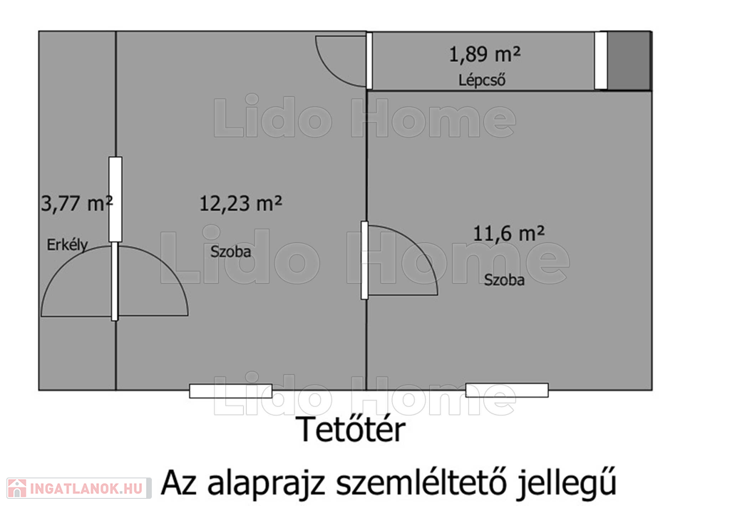 - tetőtér: közlekedő, 2 hálószoba, erkély