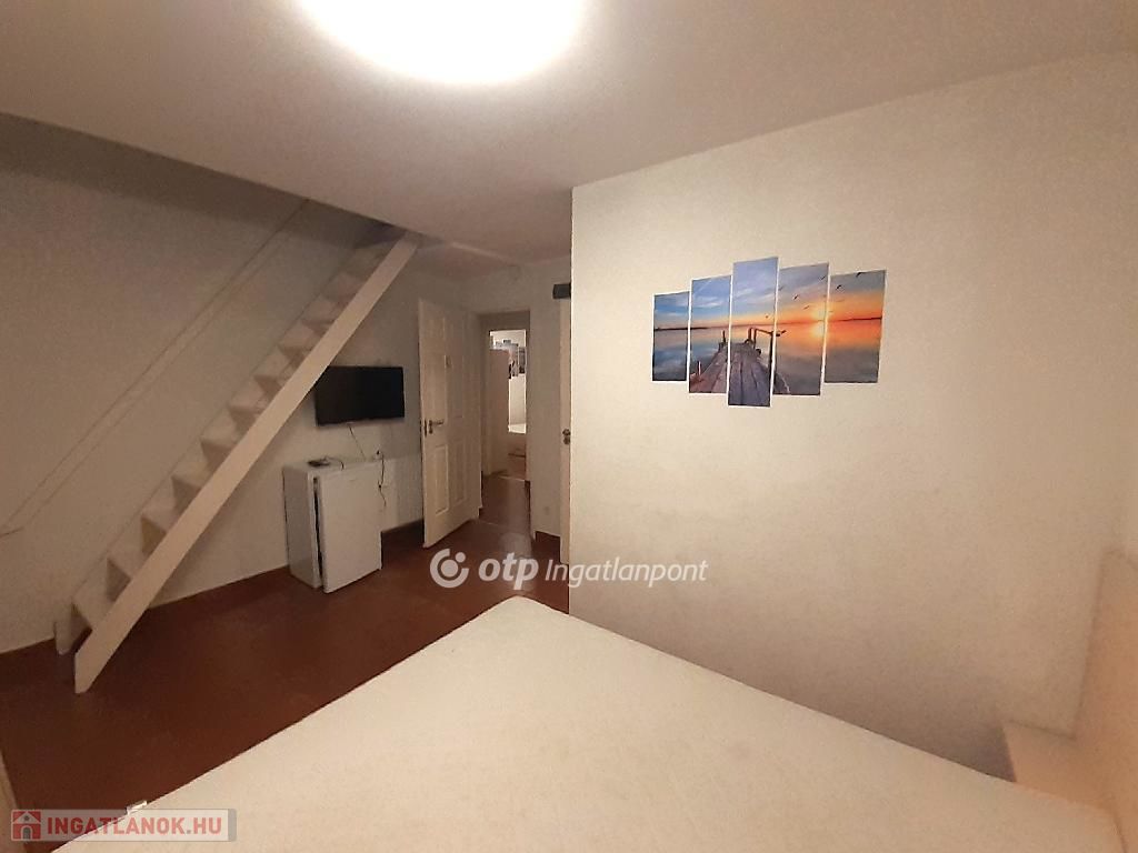 Balaton déli parton, Siófokon, 8 egységes apartmanház eladó. Az ingatlan Siófok legfrekventáltabb részén a Balaton-parttól, a Nagystrandtól néhány lépésre helyezkedik el. A zárt udvarban a parolás több autó számára megoldott. A földszint + tetőtér kialakítású panzió 2020-ban teljes felújításon esett át, a homlokzati hőszigetelés mellett új műanyag hőszigetelő üvegezésű nyílászárók kerültek beépítésre. Az üzemeltetés 365 napon át biztosított, a fűtésről elektromos kazán gondoskodik. A szobaegységek saját vizesblokkal rendelkeznek és klimatizáltak, a földszinten 4 egységhez galéria tartozik. A szobákhoz a földszinten egy közös használatú konyha áll rendelkezésre. A működéshez egy külön bejáratú iroda létesült a földszinten vizesblokkal. Az épület egyéb funkcióra is alkalmas lehet, akár vendéglátó egység is kialakítható. Az ingatlan teljes berendezéssel eladó, a vételár tartalmazza. Bővebb információért keressen telefonon!