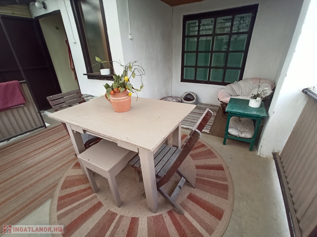 Szegeden a Tömörkény üdülőtelepen (Sárgán) a Tiszához közel (2. sor), kb. 2 x 36 m2-es. azaz 72 m2 két szinten, jelenleg 2 szobás (3 szobássá alakítható), 136 m2-es saját telken, tehermentesen eladó. A ház önálló helyrajzi számmal, villanyórával rendelkezik, saját tulajdonú ház, saját telekkel. Vezetékes víz van. Az elektromos hálózat felújított. A melegvizet villanybojler biztosítja. A fő ablakok újra cserélve. Az alsó szinten nagy fedett teraszról nyílik WC, külön fürdőszoba, abból nyílóan konyha, külön bejárattal 1 szoba van. Az emeleti részen is nagy (kb. 15 m-es) fedett terasz, előszoba és 1 nagy méretű szoba található. Minden helyiség járólappal burkolt. Az épület alul beton, felül tégla építésű. Az ingatlan közös költsége 5 eFt/hó, mely tartalmazza a szemétszállítást, vízhasználatot, közvilágítást, útkarbantartást. Parkolni is lehet a ház közelében. A két halászcsárda és a belváros közel. Rugalmasan költözhető.