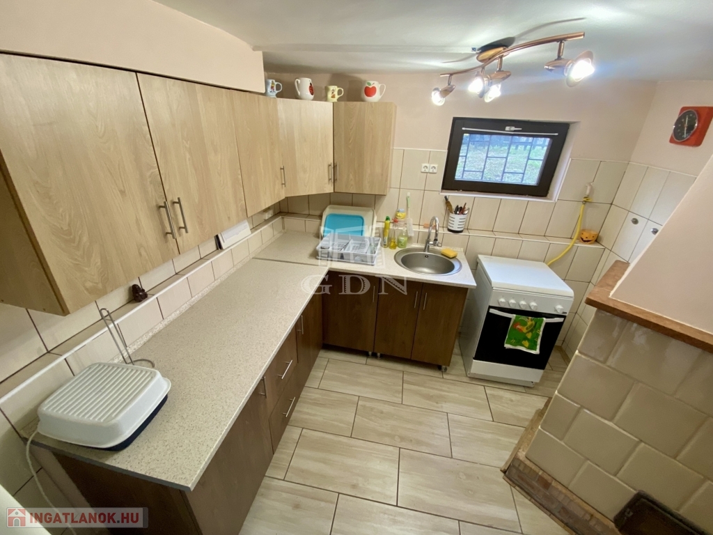 A 309 m²-es telken elhelyezkedő épület összesen mintegy 68 m² hasznos alapterülettel rendelkezik. Az alagsori szint 30 m²-es, ahol a konyha, egy szoba és egy kis helység került kialakításra. Itt található egy meghitt hangulatú cserépkályha és emelett elektromos fűtőtestek biztosítják a komfortot. A földszinten egy 24 m²-es lakótér található egy nappalival és egy fürdőszobával, amelyhez egy 10 m²-es terasz kapcsolódik; ezen a szinten gázkonvektor és elektromos fűtés gondoskodik a kellemes hőmérsékletről. A tetőtérben egy 10 m²-es szoba kapott helyet, valamint egy 4 m²-es terasz, ahonnan lenyűgöző panorámás kilátás nyílik a Duna holtágára és a környező természeti környezetre.