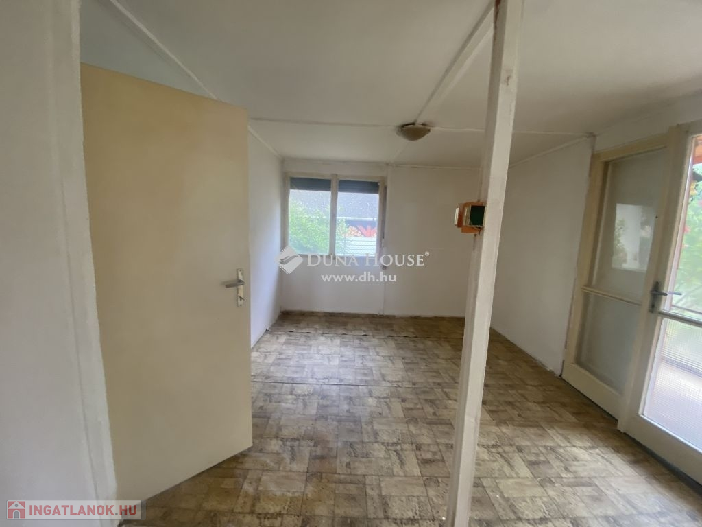 A beépített üvegezett teraszról lépünk be az egyterű nappali, szobába. Mindössze egy fallal van leválasztva a konyha helyiség.Találunk még egy kis fürdőt, káddal, toalettel.
