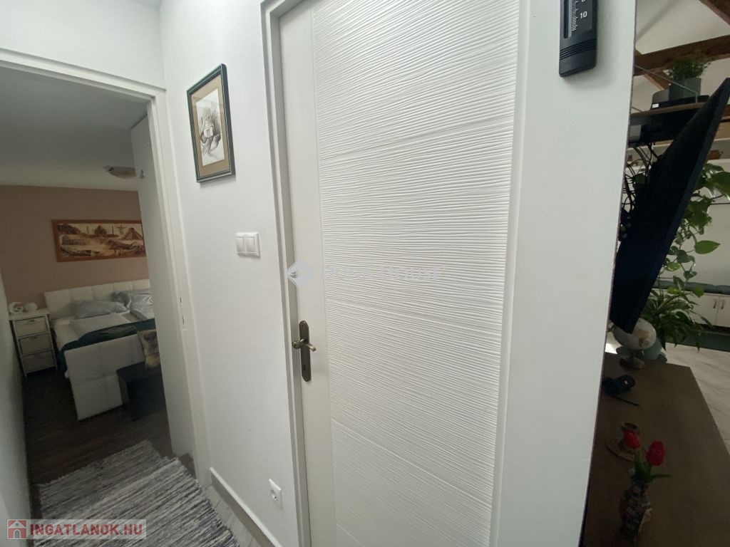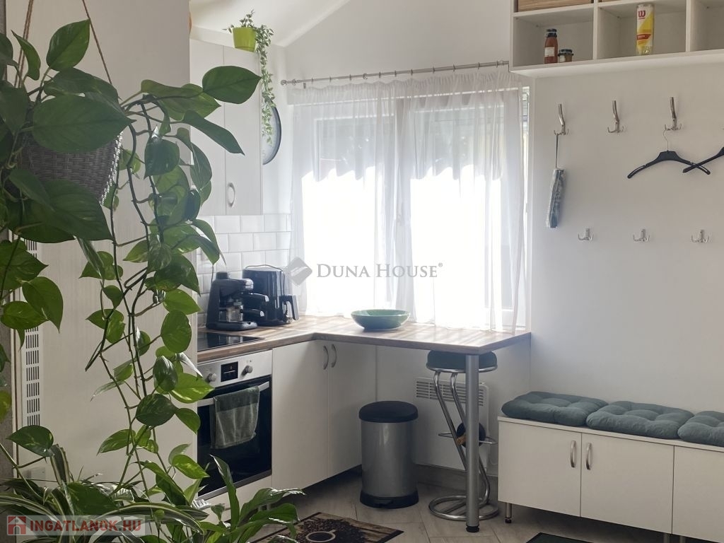Elrendezése:Félig polikarbonáttal és félig lambériával fedett teraszról ( nyári konyha) lépunk a világos modern dizájnal és nagy belmagassággal rendelkező amerikai konyhás nappaliba. Melyből nyílik a tető ablakkal ellátott, világos toalettes fürdő. Valamint a hangulatos hálószoba.