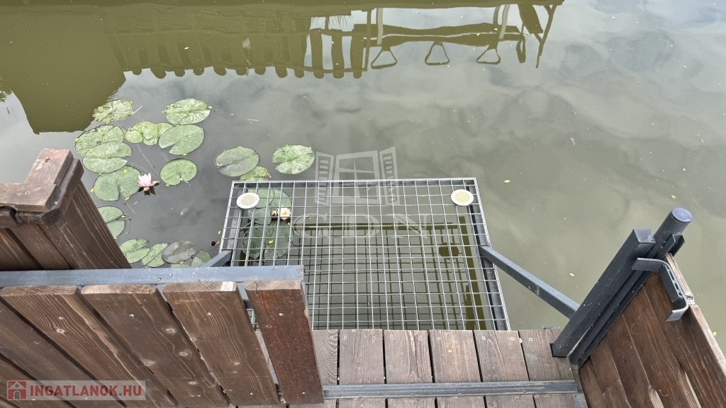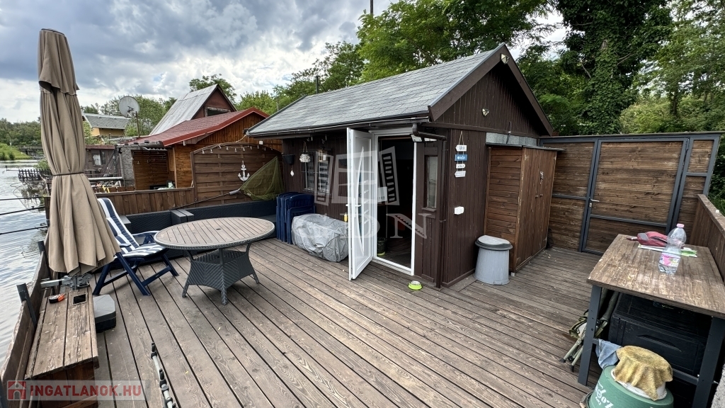 Környézetvédelmi csendes területen álló 42m2-es stég (7x6), amin egy 16m2-es (4x4) teljesen felújított faház található.