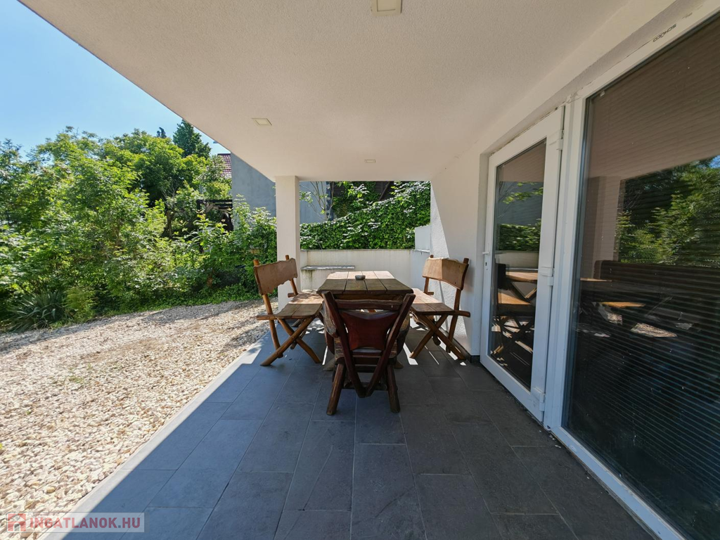 A 645 m²-es kert rendezett, panorámás, az utolsó utca az erdő szélén – garantáltan zavartalan a nyugalom. A ház mögött praktikus tároló is található, amely tovább növeli a kényelmet.