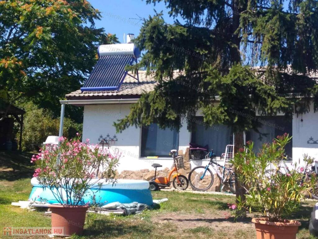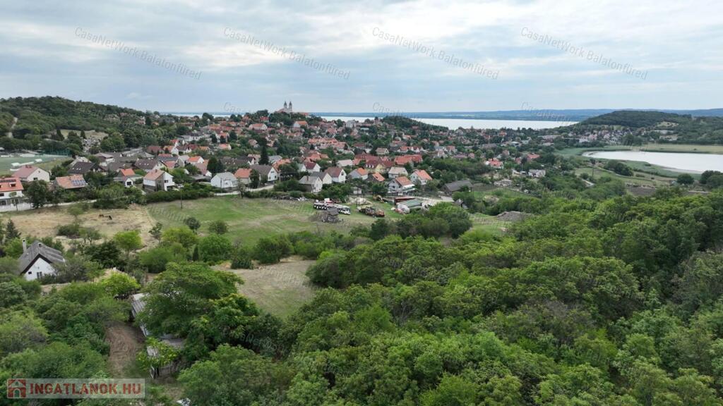 Eladó egy panorámás, zártkerti ingatlan a falu északi részén, amely egyszerre nyújtja a Belső-tó és a tihanyi félsziget látványát.