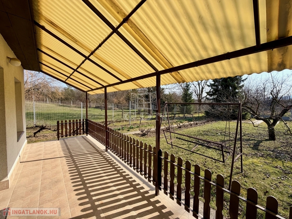 Ezenkívül rendelkezésünkre áll a ház előtt 12 m2-es fedett terasz, hátul egy 6 m2 zárható tároló és egy majdnem 4 m2-es fedett pakolós rész, ami tűzifa tárolására tökéletes.