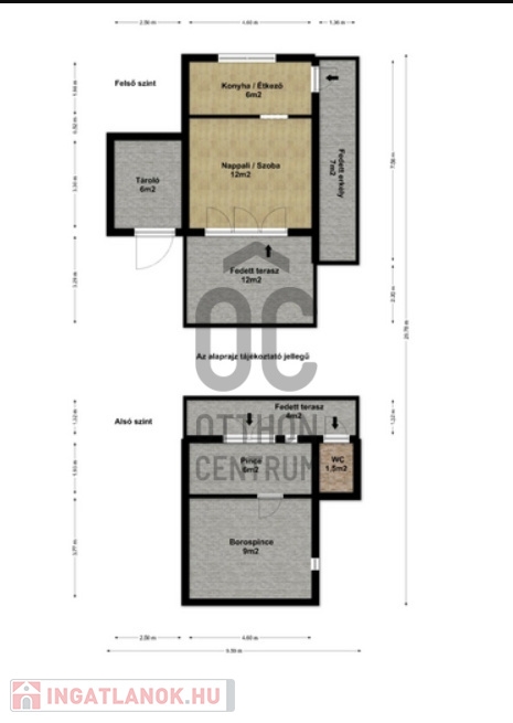 - bruttó 46 m² / nettó 40 m² (pincével együtt)