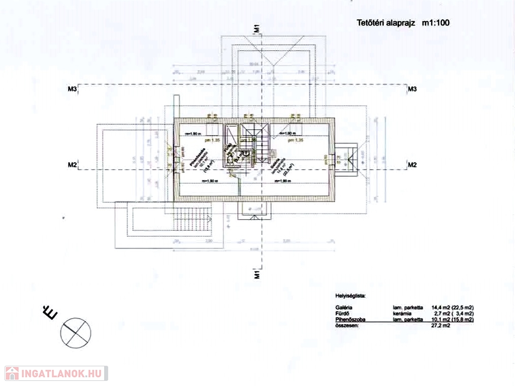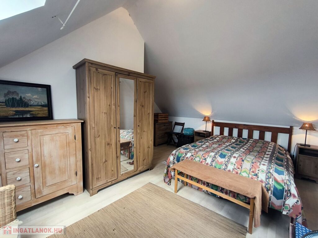 Tetőtér: galériás nappali-konyha, hálószoba, fürdő.