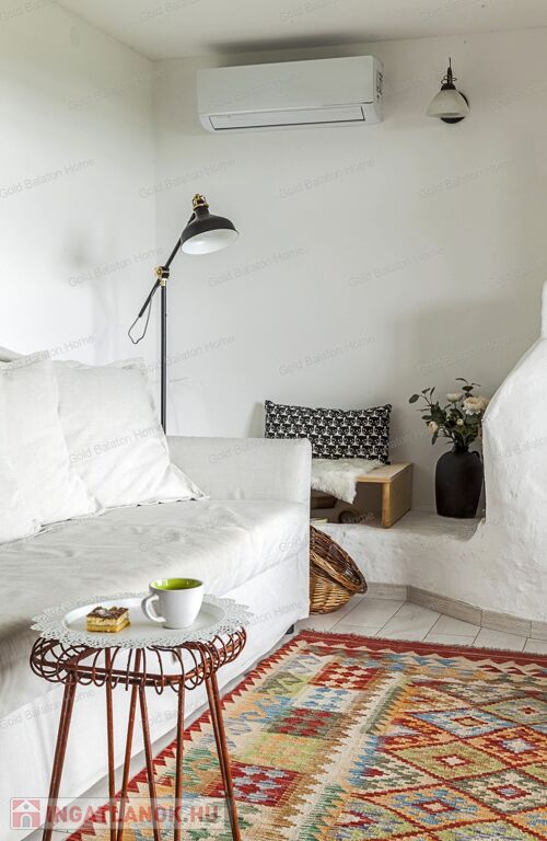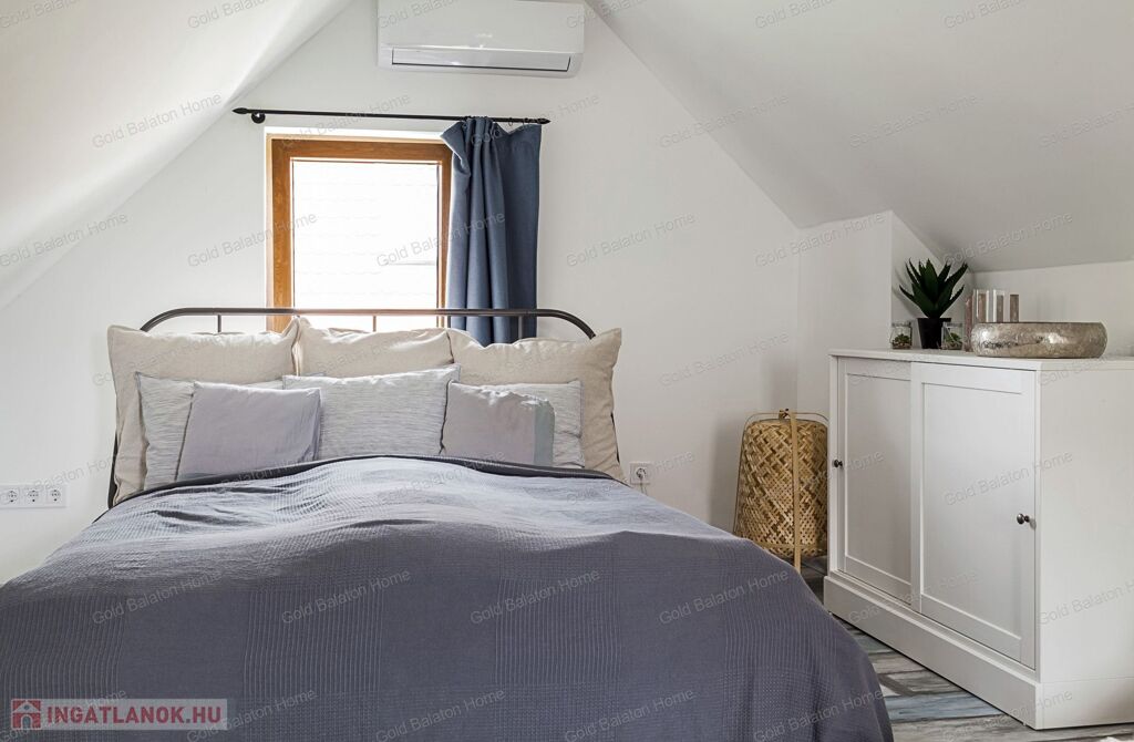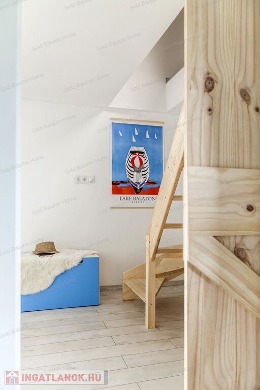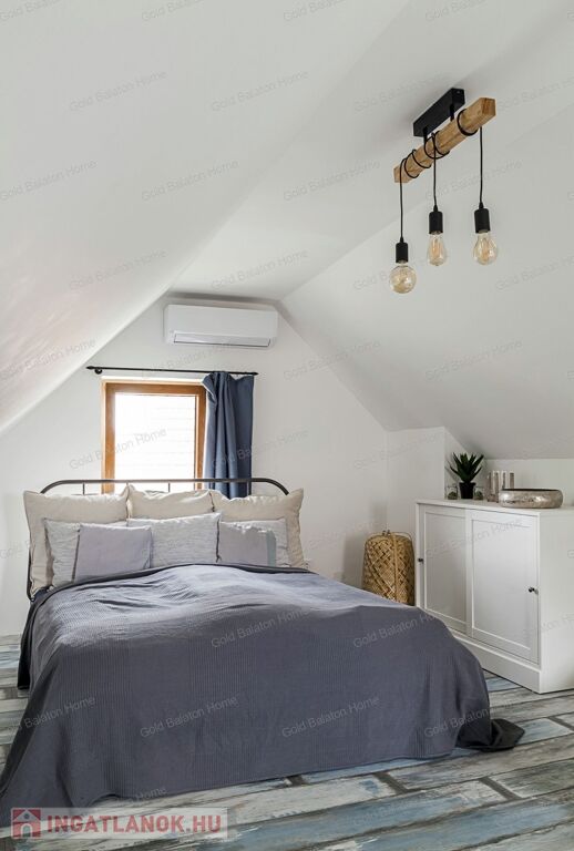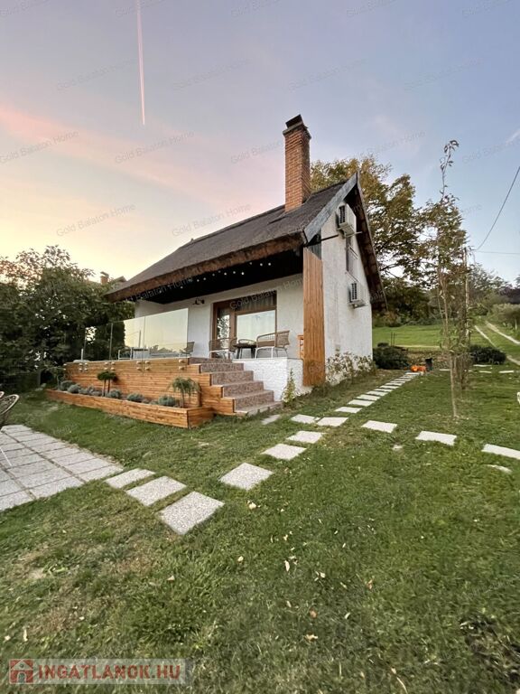 A kitűnő statikai állapotban lévő, a teljesség igényével, belsőépítész tervei által felújított, belterületi, BALATONI panorámás, tetőtér beépítéses nyaraló, csendes, zöldövezetben helyezkedik el a település északi oldalán az erdő szomszédságában. LKe1-Sz övezet (kertvárosias lakóterület, 30 %-os beépíthetőség) ezáltal a nyaraló bővíthető.