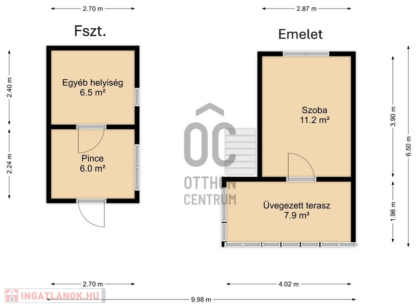 - A házban az emeleti részen egy szoba és egy üvegezett terasz, míg a földszinten két helyiség található,