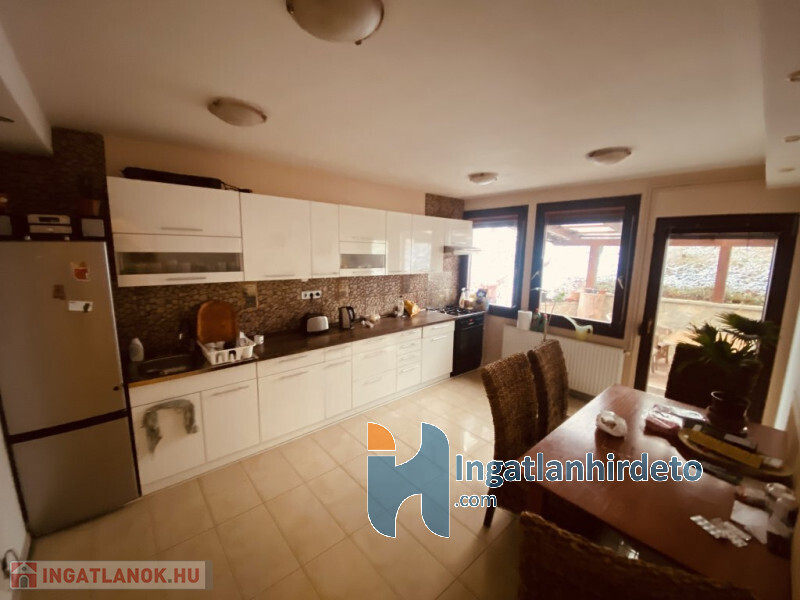 Elhelyezkedése: Zöldövezet Emeleti elhelyezkedés: Földszinten Állapota: Jó Komfort besorolása: összkomfortos Építési éve: 1990 Alapterülete: 298 m2 Telekterülete: 2 245 m2 Szobák száma: 8szoba Közművek: Gáz, Víz, Villany Gázellátás: Vezetékes Vízellátás: Vezetékes víz Melegvíz-ellátás: Gázkazán Áramellátás: 230V/380 V Fűtés módja: Gáz Fűtés típusa: Cirkó Homlokzat állapot: Jó Építési mód: Könnyűszerkezet Tető formája: Magas Tető anyaga: Bitumen zsindely Parkolási lehetőség: Garázsban, Parkolóban Kilátás: Utcafronti kilátás, Udvari kilátás, Hegyi panoráma, Parkra nyíló kilátás Napelem: Nincs Jellemzői: Alacsony rezsi, Jó közlekedés, Két bejárat, Redőny, Fűtött garázs, Légkondicionáló, Étkező, Udvari terasz, Beépített szekrény, Beépített konyhabútor, Autóbeálló, Kert, Kerítés, Ipari áram, Parketta burkolat, Egyedi vízóra , Térkő, Zöldterület, Kapunyitó automatika Energetikai besorolás: Nincs adat Egyéb jellemzők: Terasz, Melléképület, Pince Tv, Internet: Kábeltévé Terhelések: Tehermentes ingatlan