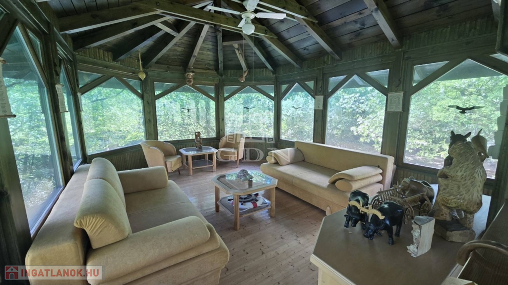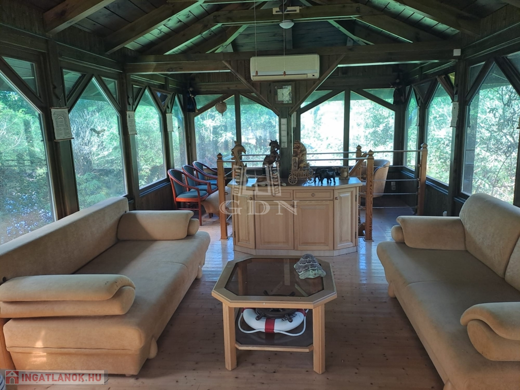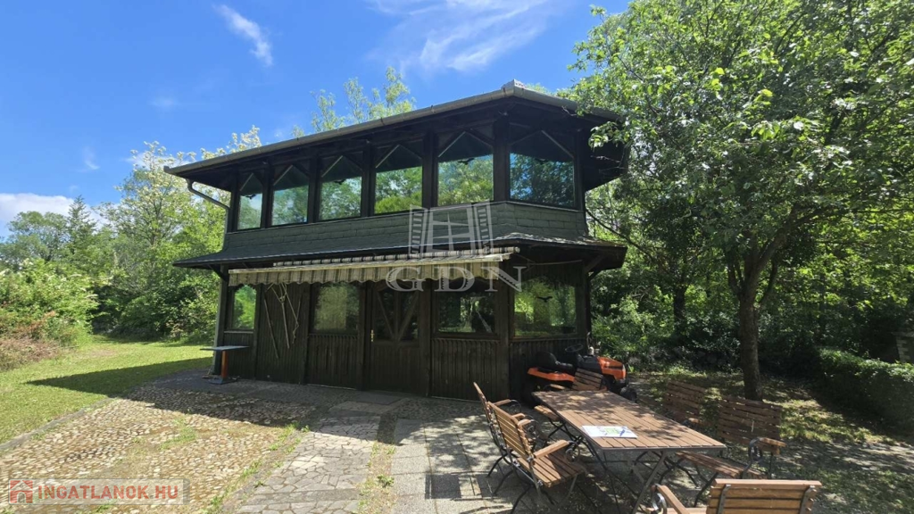 A területen egy 80 m²-es, kétszintes ház áll, amely ideális helyszín a pihenéshez. Az alsó szinten konyha, nappali és egy mosdó található, míg az emeleten egy kellemes, klimatizált helyiség várja a tulajdonosát, ahol az év bármely szakában zavartalanul élvezhető a nyugalom. A ház minden közművel ellátott: víz, villany és szennyvíz is be van vezetve, így biztosított a kényelmes tartózkodás.