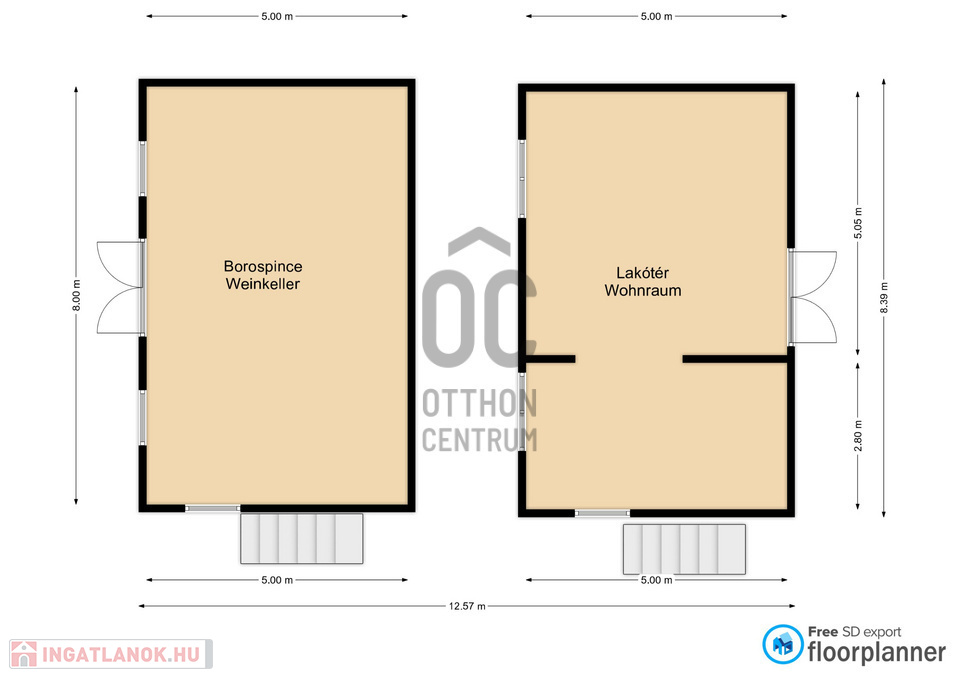 -Az alsó szinten téglaboltíves pince, az emeleten 2 tágas helyiség van.