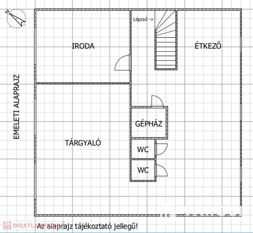 A földszinten konyha, hűtőkamra, raktár, tusoló, öltöző és 2db WC is van. Az emeleten iroda, bemutató/tárgyaló terem, étkező, közlekedő a légtechnikai gépház és szintén 2 db WC is található.