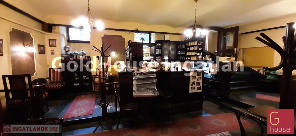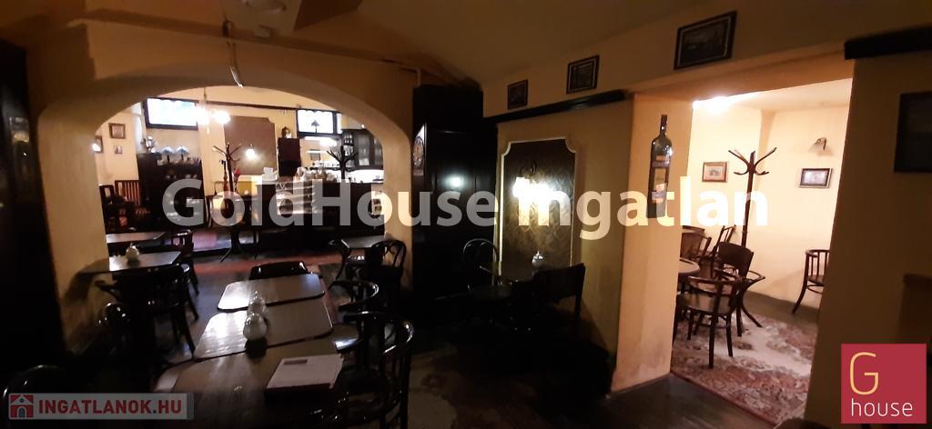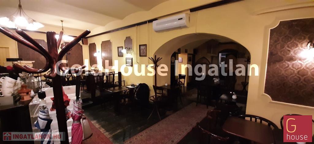 Minden engedéllyel rendelkező, évek óta közkedvelt szuterén kávézó-pub. Egy nagyobb, utcai ablakokkal rendelkező és három kisebb helyiségre tagolódik a vendégtér. Vendégmosdók, raktár, személyzeti mosdó, zuhanyzó kialakított. Téliesített terasz. Légtechnika, elszívás a tetőig felvezetve, bélelt kémény. Légkondi, kamerarendszer-a teraszon is, 3x16 A áramerősség.