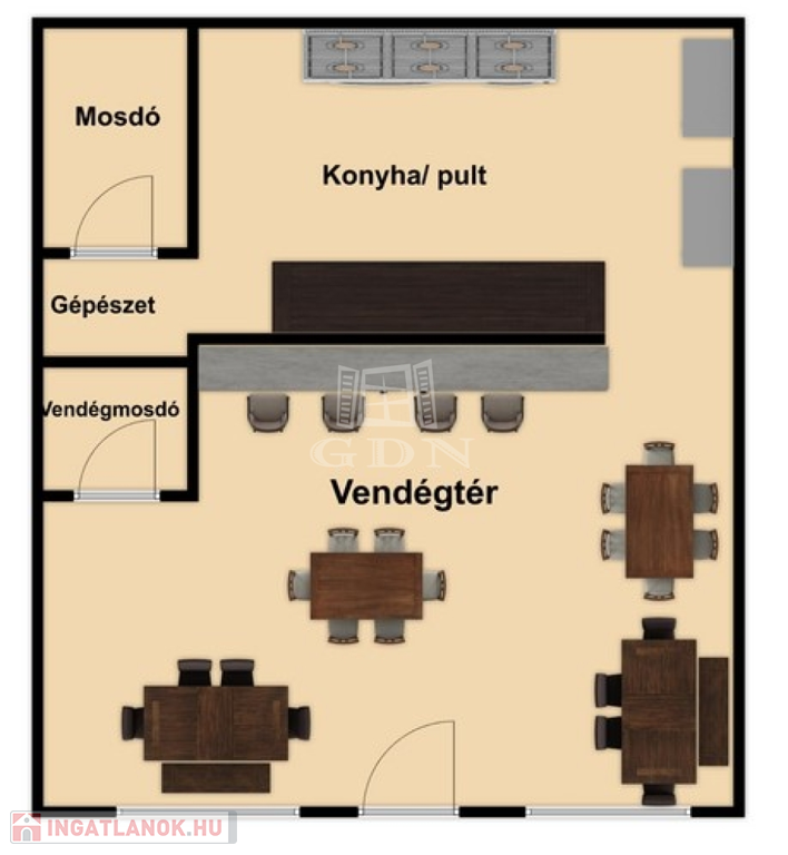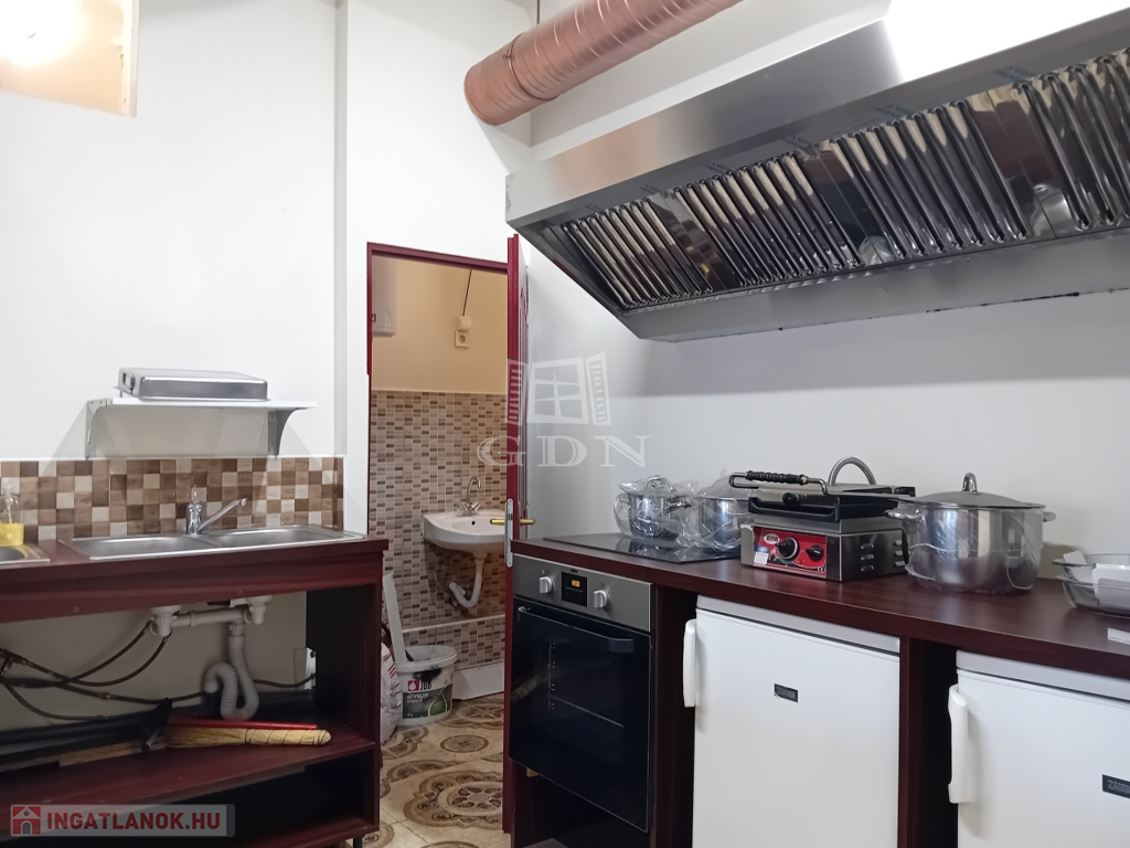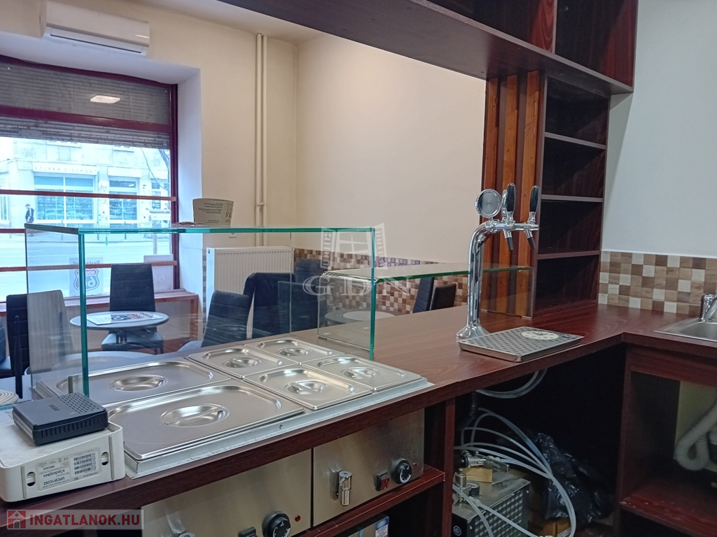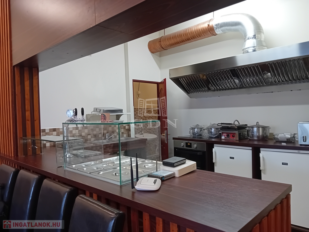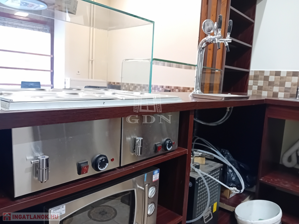 A 37 nm-es ingatlan utcai bejáratos vendégtérrel, ízléses bútorzattal, hideg/meleg konyhai felszereléssel, italpulttal, személyzeti és vendégmosdóval, szellőzőberendezéssel, hűtőpulttal, ipari mosogatógéppel és MINDENNEL IS felszerelve, HIDEG-MELEG KONYHAI ÉS ITAL ÁRUSÍTÁSI MŰKÖDÉSI ENGEDÉLLYEL várja új tulajdonosát.