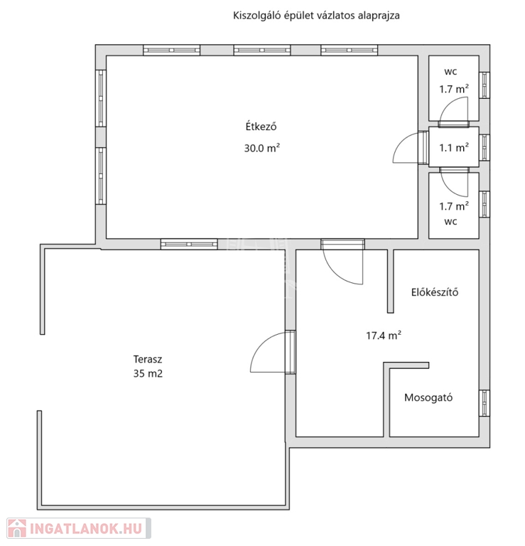 A kiszolgáló –közösségi- épület szintén fa szerkezetből készült 52 nm nagyságú. Az épületben van kialakítva a vendégek étkezésére alkalmas étterem és egyéb kiszolgáló helyiségek.