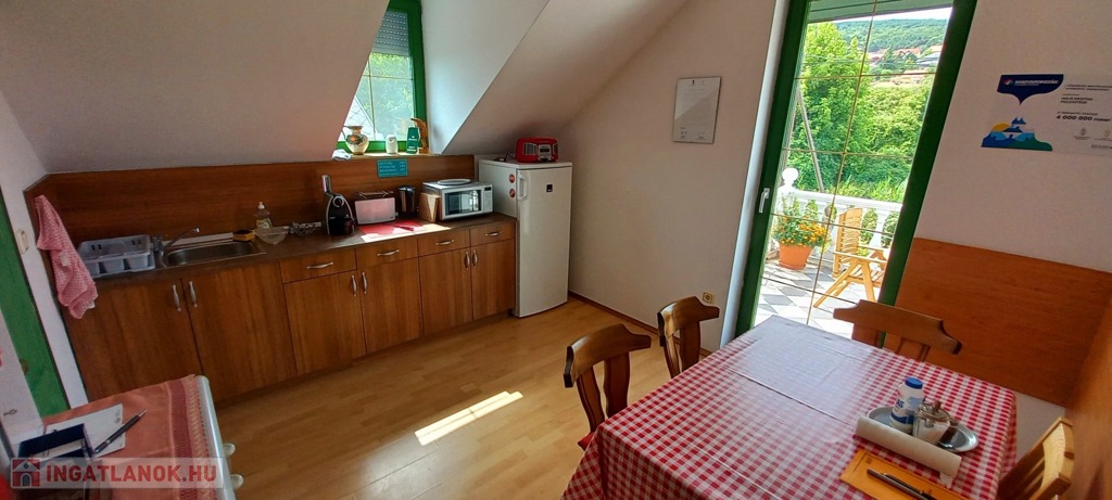 A nyáron kellemesen hűvös szuterén szinten jelenleg a lakórész található, a 1. külön bejárattal is ellátott szinten 3 szobás, teljesen felszerelt apartman a 2. szinten 4 szobás panzió. A kert méretéből adódóan könnyen kezelhető, sok erőfeszítést nem igényel, illatos rózsák, virágos bokrok, szalonnasütő teszi barátságossá mindenki számára.