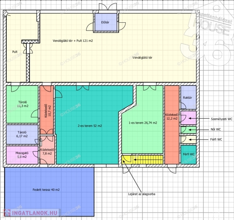 -121 m2-es vendéglátó tér és további, külön megközelíthető privát termek (27 m2 és 52 m2)