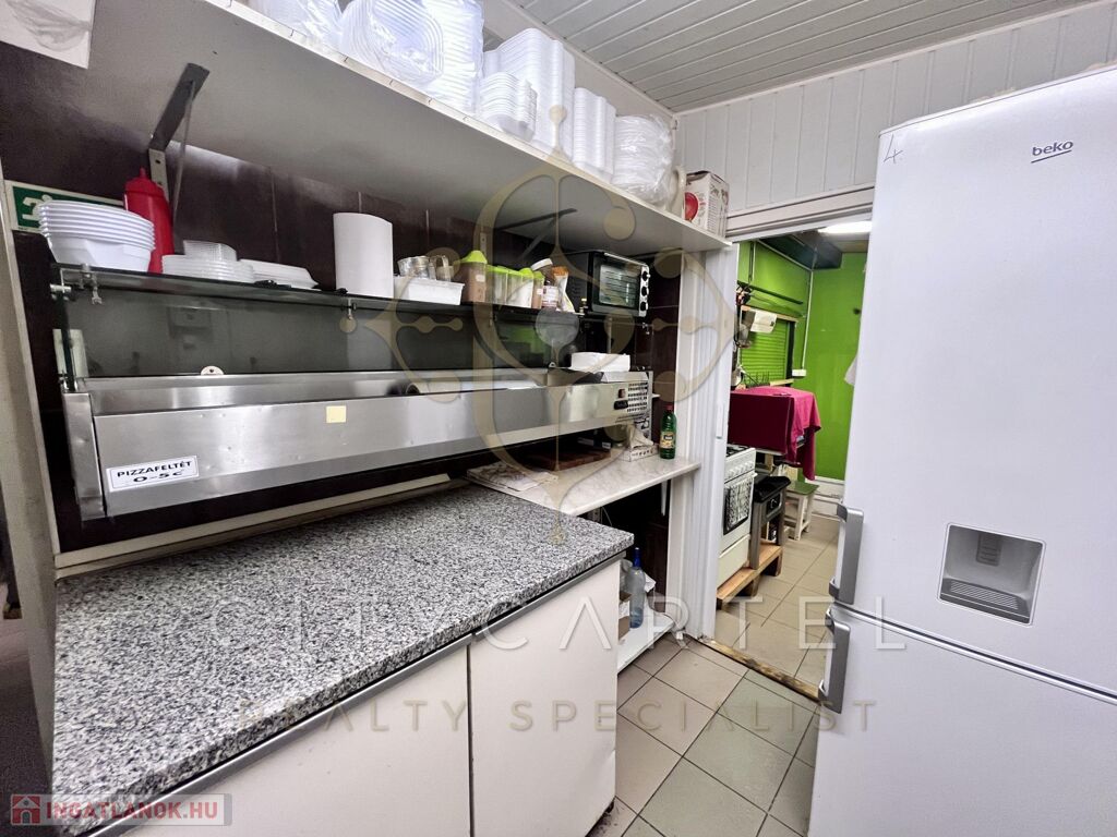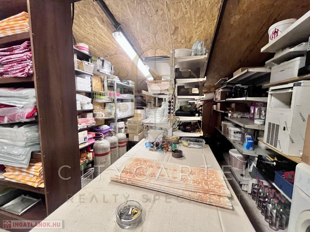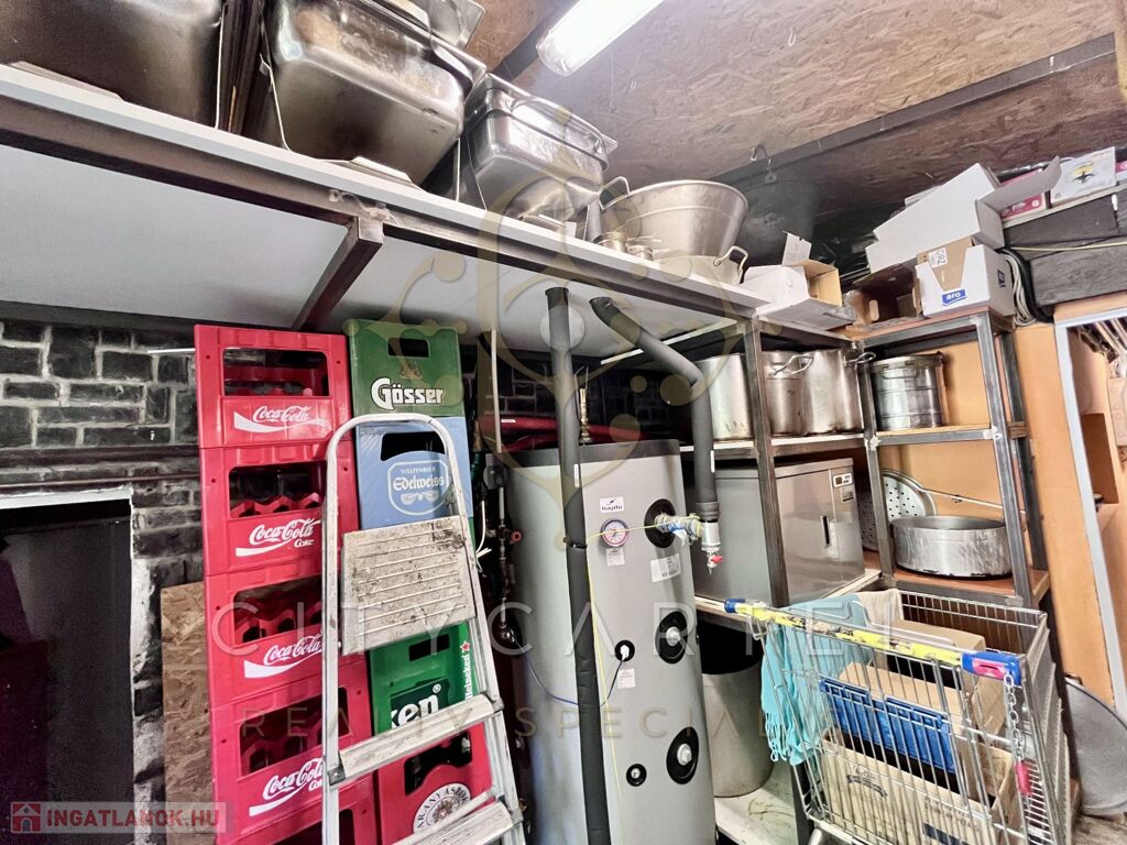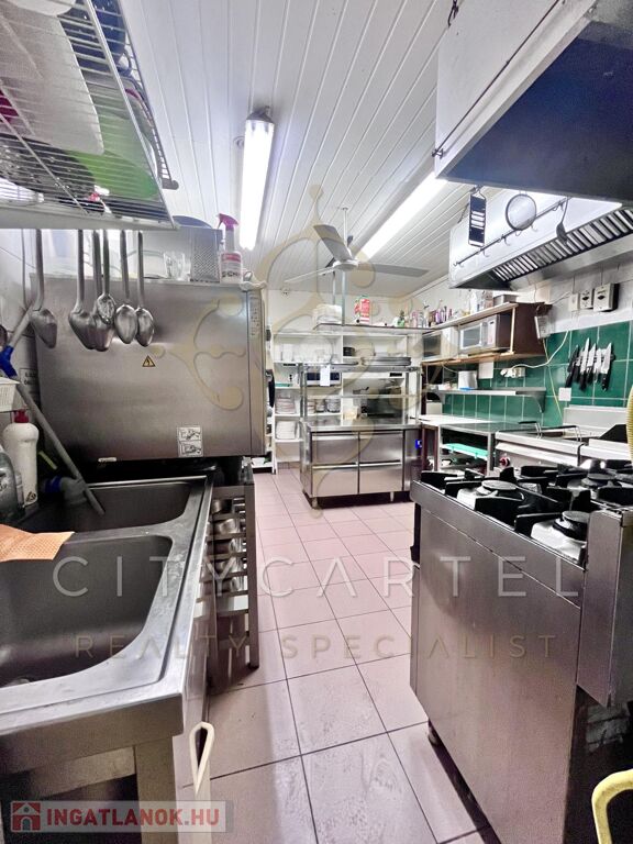 A vendéglő fogadó tere 110 nm, a konyha 20 nm, az előkészítő 6 nm, a mosogató 10 nm, a mosdók 2-2 nm-esek.