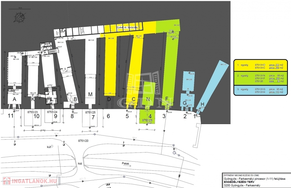 A hat önálló helyrajzi számon nyilvántartott pince egyben vagy 2-2 egységenként is eladó. Az egyik egységhez kapcsolódóan egy présház építésére alkalmas telek terület ( 53 nm ) is tartozik.