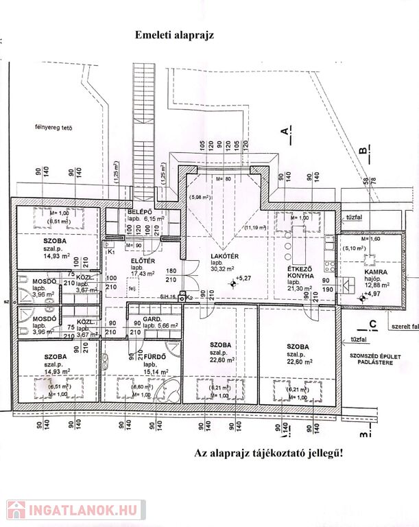 Az ingatlan összes területe: 455 m2