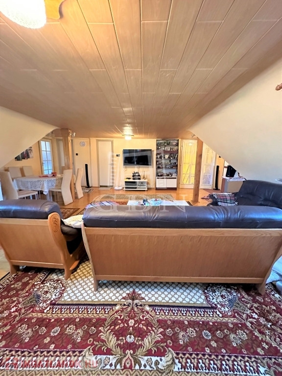 A ház emeletén egy méretes lakás került kialakításra. A tágas, világos nappalin túl egy konyha-étkező, további 3 szoba, fürdőszoba és egy gardrób helyiség is kialakításra került.