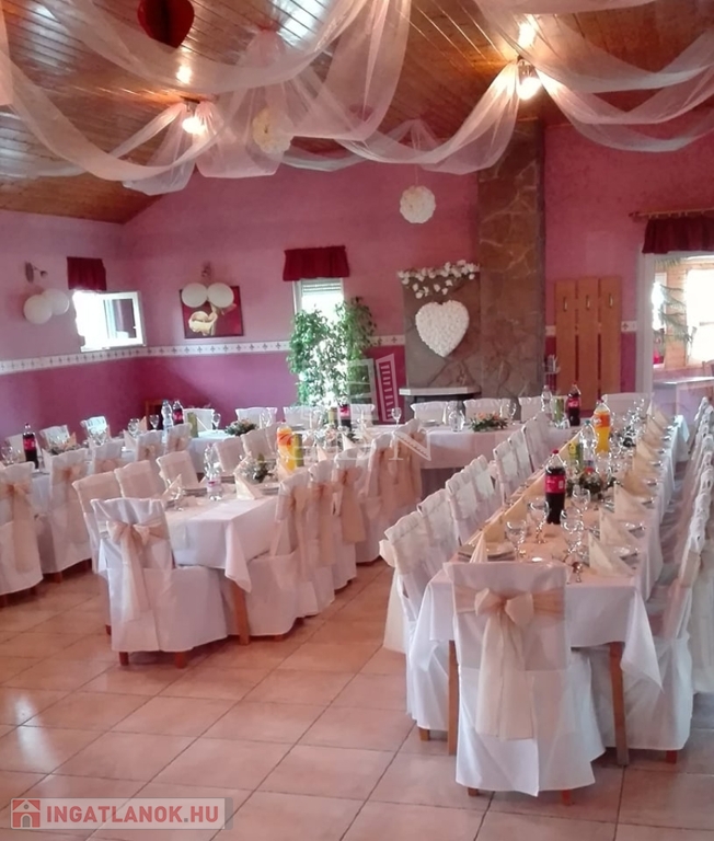Beltérben egy nagyterem, valamint egy kisebb kb 20 főt befogadó külön helyiség kapott helyet, amely a vendégeket fogadni tudja. Kültéren pedig fedett terasz, amely tavasztól-őszig ugyancsak kiváló választás lehet összejöveteleknek.