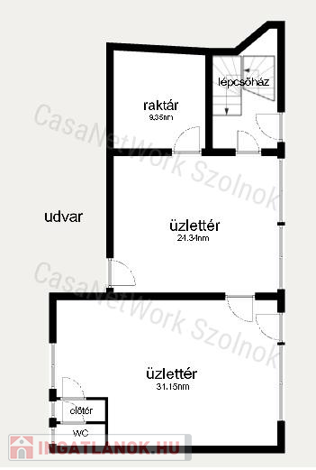 - az üzlet kettő üzlettérből, raktárból és mosdó-WC helyiségből áll, alapterülete összesen 67 m2
