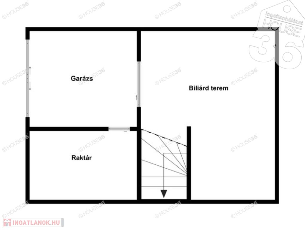 -90 m2 pince, ahol a biliárd terem, raktár, garázs található,