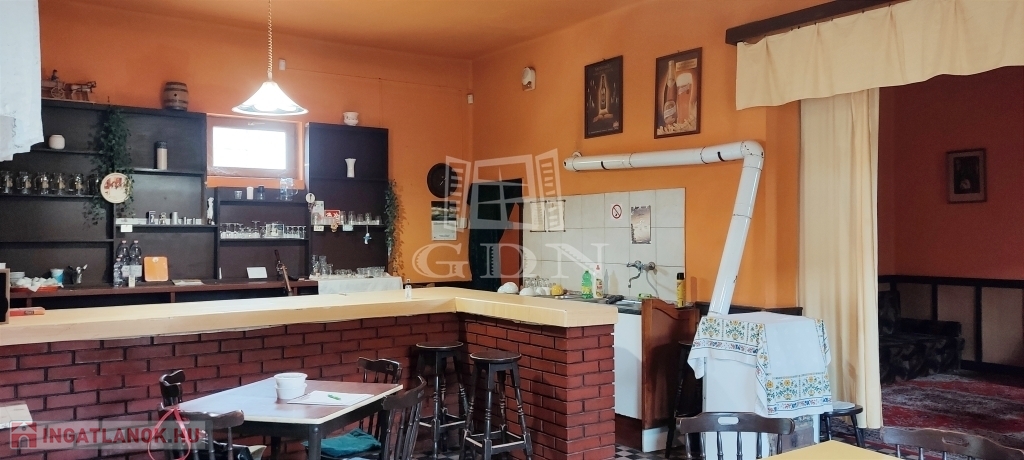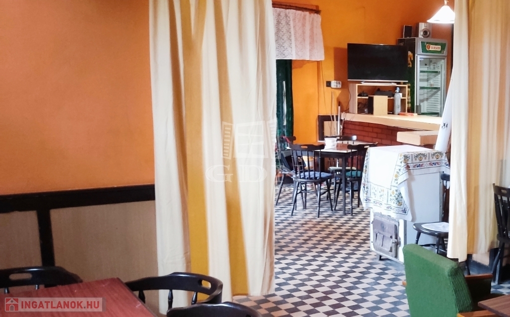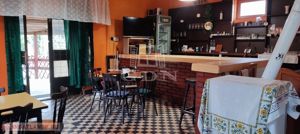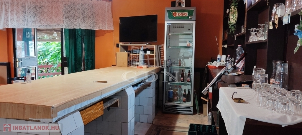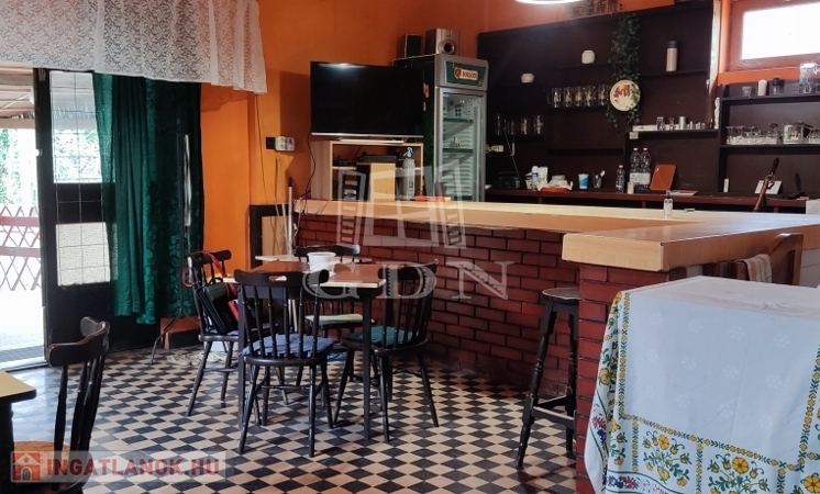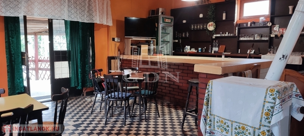 A terasz felől közelíthető meg a pulttal rendelkező 43 m2 alapterületű helyiség, ezen át pedig a másik vendégtér, valamint külön női és férfi mosdók.