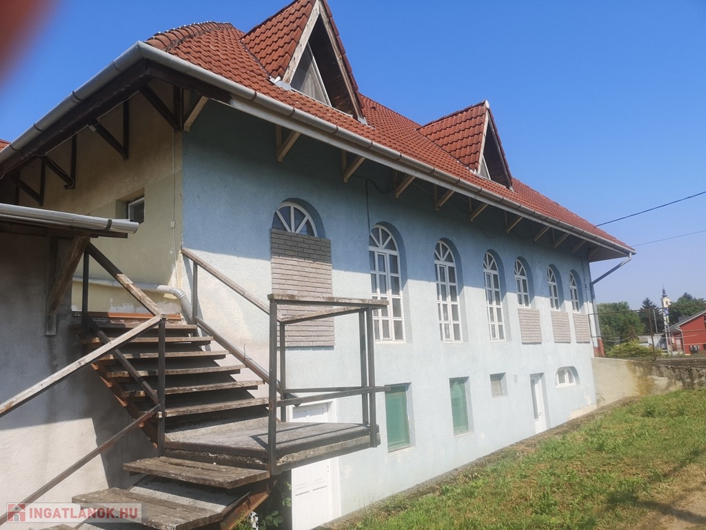 Zala vármegye, Tornyiszentmiklós közel 900m2-es üzletház besorolású ingatlan eladó. Tornyiszentmiklós község Nyugat-Magyarországon, a Nyugat-Dunántúlon, Zala vármegye délnyugati sarkában, a magyar-horvát-szlovén hármashatár közelében fekvő település. A részben felújítandó ingatlan legutóbb panzióként és sörözőként funkcionált. A háromszintes épület alagsorában (300m2) sokáig pékség működött, a földszinten az étterem, konyha, kiszolgáló helyiségek, és 3 apartman (hálószobával és fürdőszobával), míg a tetőtérben további 6 apartman került kialakításra. A 90-es évek elején épült ingatlan melegéről gázkazán gondoskodik, radiátoros hőleadókkal. Az épület melletti, legutóbb vegyesboltként működő ingatlan is a vételár részét képezi. Parkolás az épület előtt, és az udvarban megoldott. A 2628m2-es telken elhelyezkedő üzletház tehermentes, a vételár kifizetését követően akár bútorozottan is eladó.