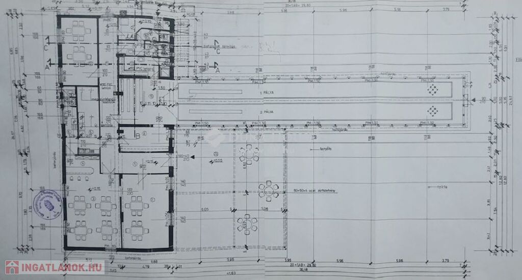 Az épület földszintje 394 m2 (+140 m2 terasz), a külön bejáratú tetőtéri apartman 38 m2 (bruttó 75 m2), a telek területe 1327 m2. Az ingatlan folyamatosan üzemel, karbantartott, jó állapotban van, az infrastruktúrája a vendéglátásnak megfelelő. Az egység kuriózuma a 175 m2 alapterületű tekepálya. Parkolási lehetőség a telken belül és az épület előtt is adott.