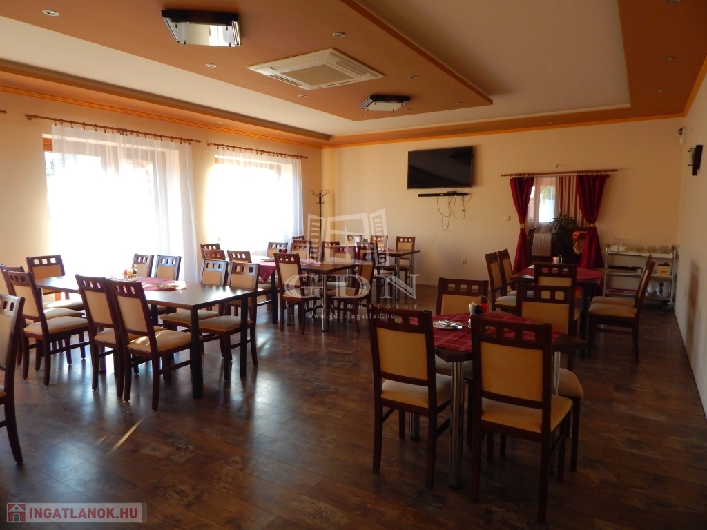 Folyamatosan karbantartott, Vonyarcvashegy központi részén, üdülőövezetben, 268 m2-en elhelyezkedő, egész évben jól prosperáló, nyereséges étterem, TEHERMENTES állapotban, minden berendezéssel, állandó vendégkörrel együtt ELADÓ!