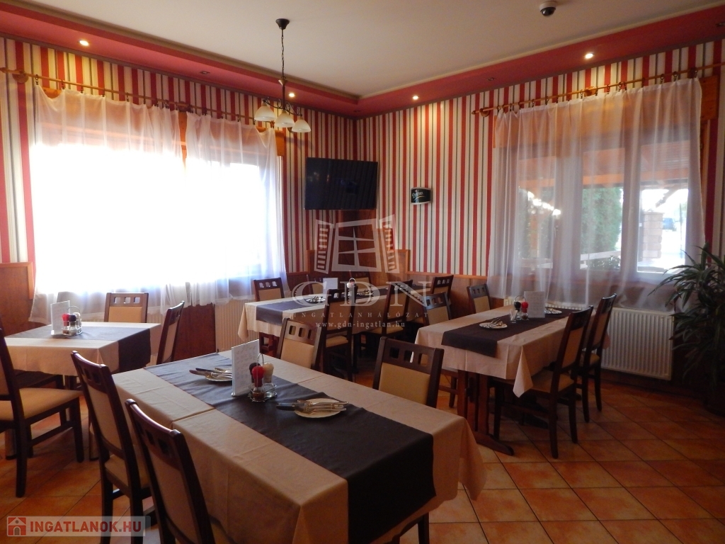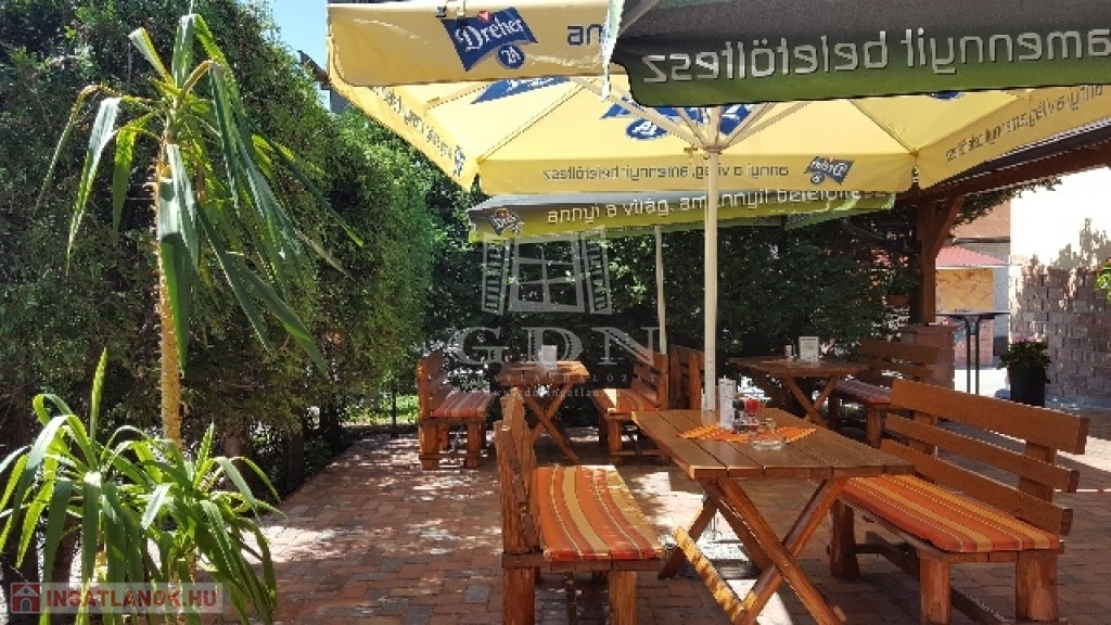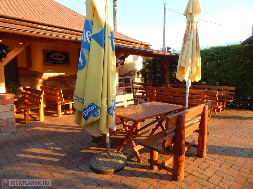 Az étteremhez tartozik egy 100 m2-es térkövezett terasz- 7 nagy asztallal-, 2 nagyterem kb 100 fő befogadására alkalmas, bárpult, konyha és több előkészítő helyiség, 2 különálló vendég vizesblokk és egy pincével rendelkező raktár.
