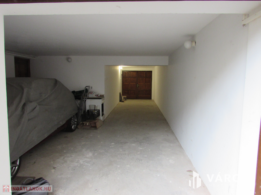 A garázsban áram áll rendelkezésre. A fa kétszárnyú garázsajtó 2 méter széles. A garázsba 2 autó egymás mögött elfér, de a helységet legcélszerűbb raktárnak használni. A tulajdonos is raktárnak szeretné kiadni.