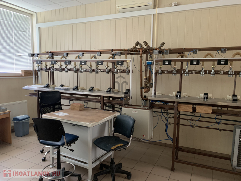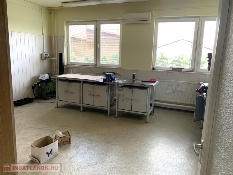 Helyiségek belmagassága (álmennyezetig): irodák: 2,7 m, műhelyek: 3,5 m; raktár: 5 m
