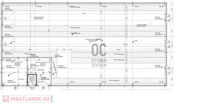 Alapanyag raktár: 520,3 m2 (16,17 x 32,18 m) üzemcsarnoktól különálló épület