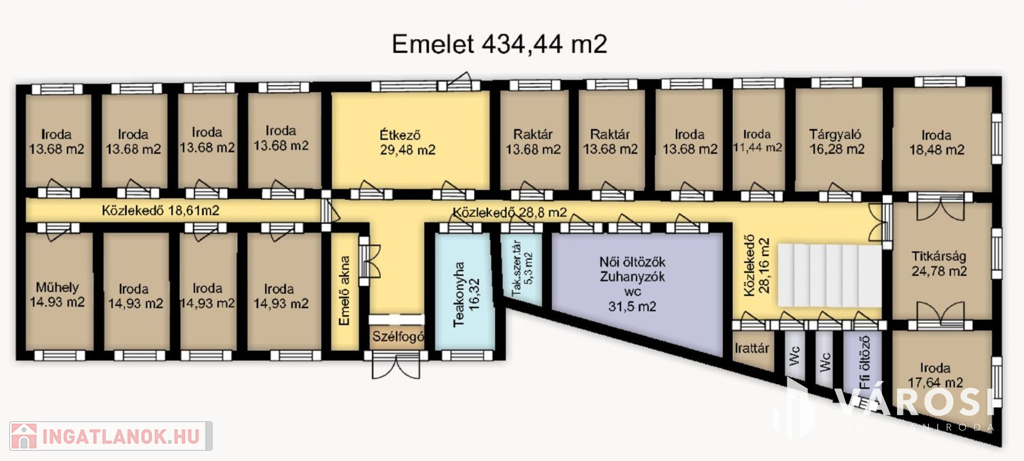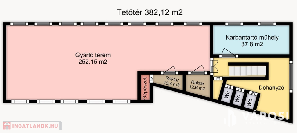 Az épületben a nagyméretű raktártól a kisebbekig, irodáktól a műhelyig bármi kialakítható.