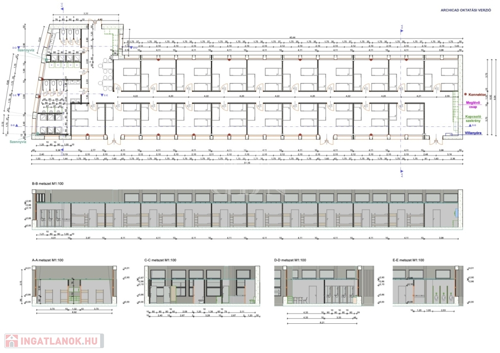Az ingatlan nemcsak munkásszállóként funkcionálhat, hanem irodai célra is átalakítható, vagy hosszú távú befektetési lehetőséget is kínál.