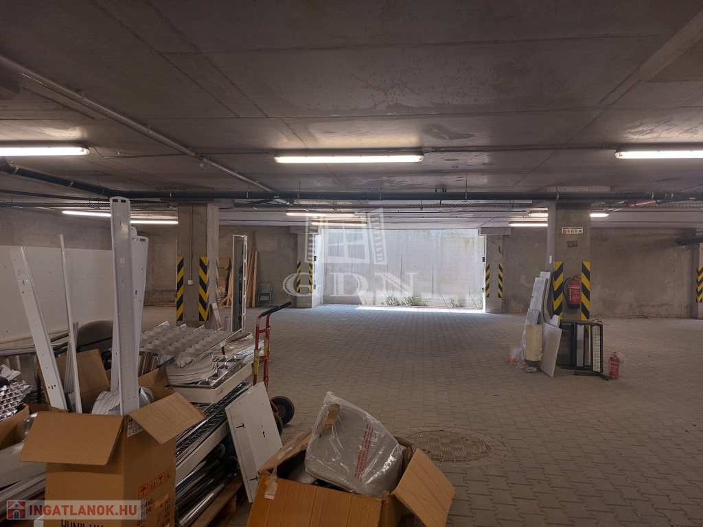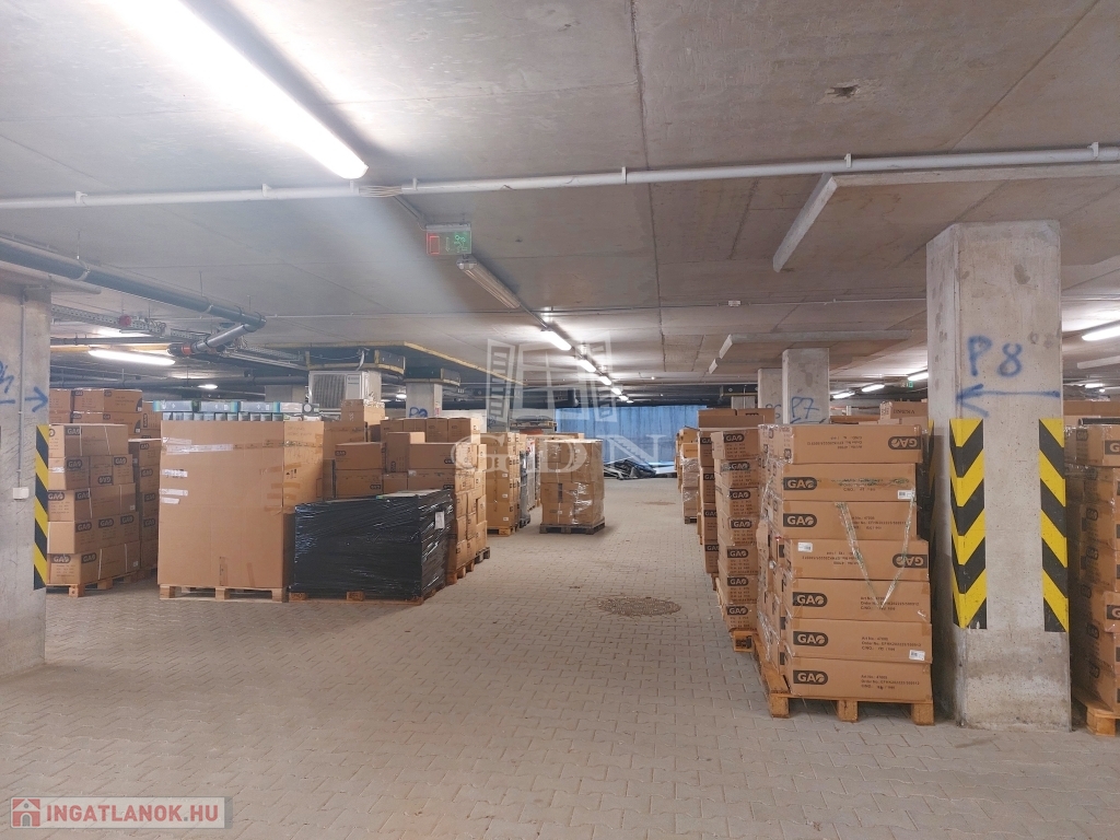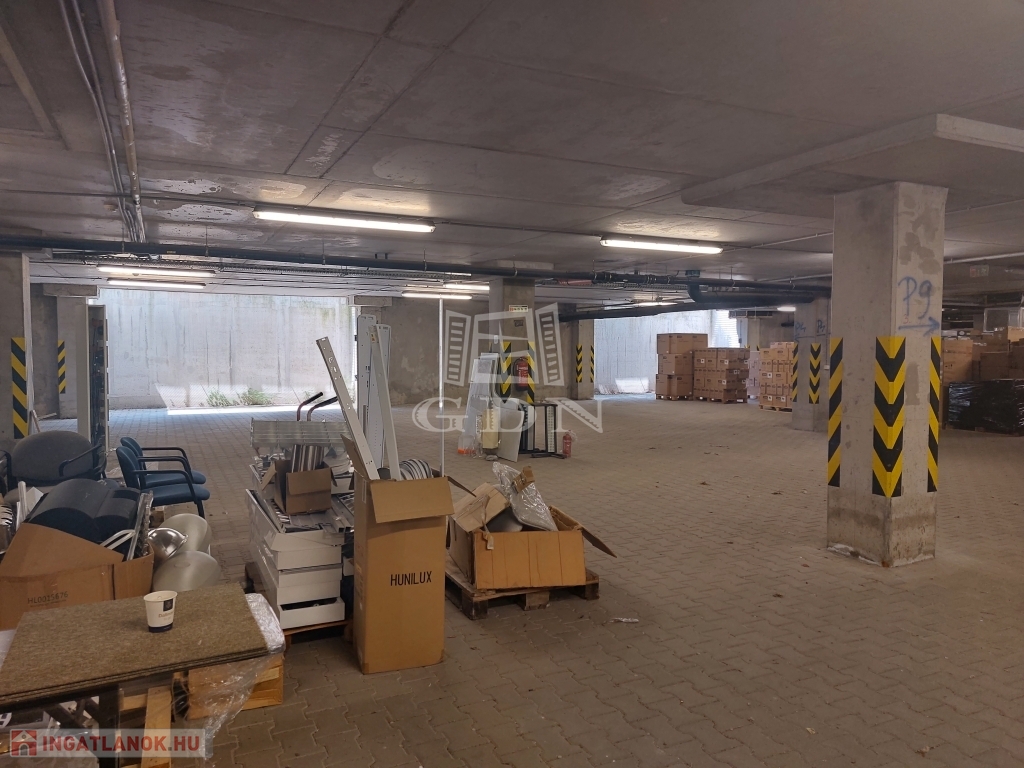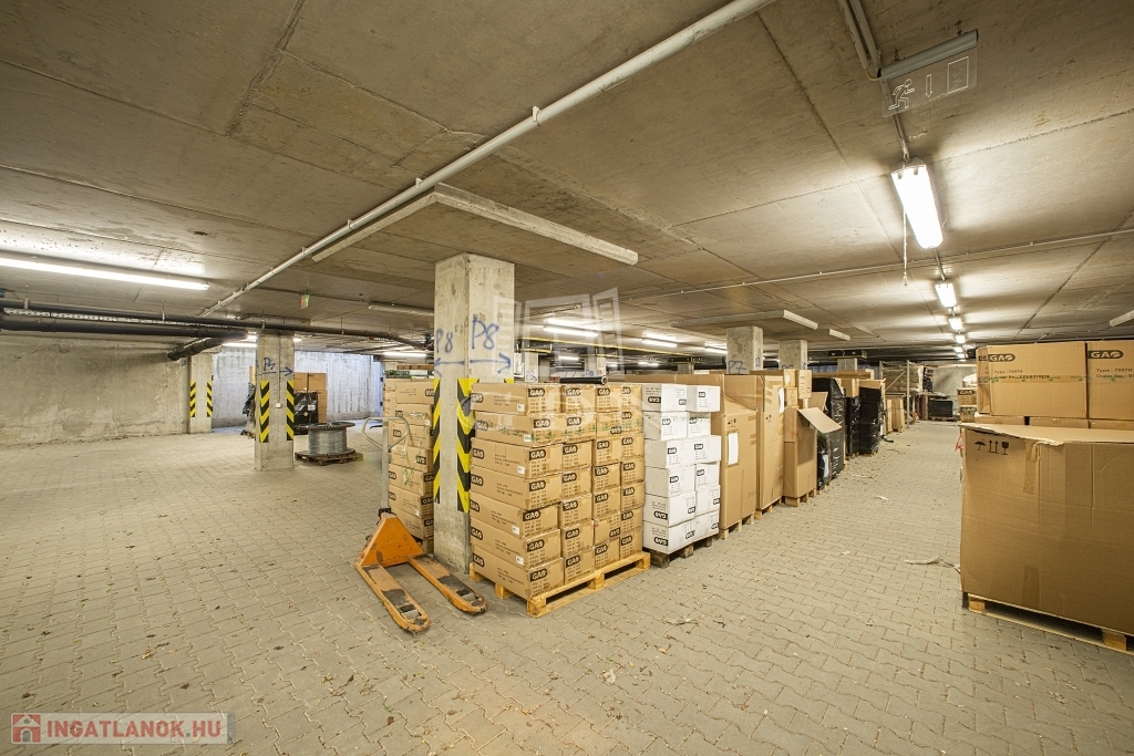 A raktárterületet az épület mélyszintjén található 2,6 m belmagasságú, tömbös tárolásra alkalmas.