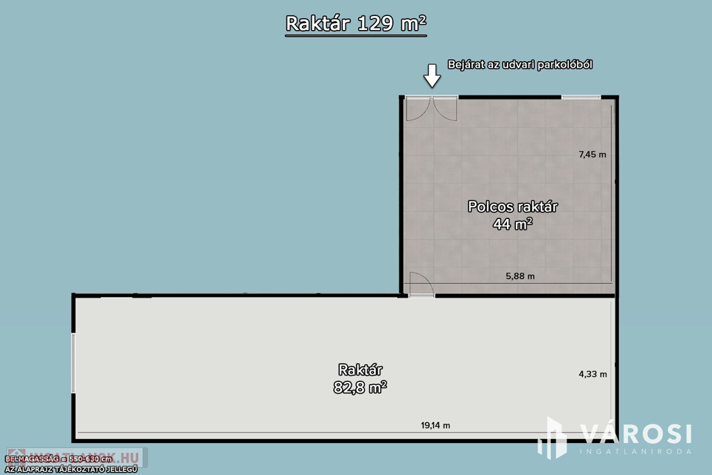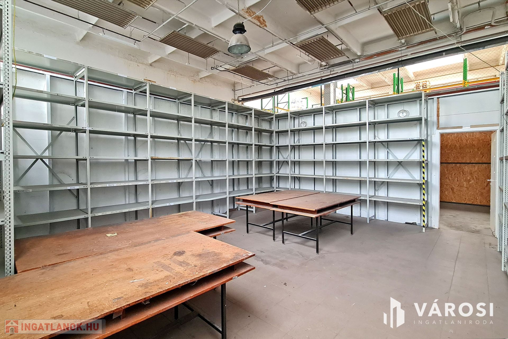 Az össz. terület 129 m2, amiből le lett választva 1db nagyobb raktár és 1 db polcos raktár. Amennyiben nincs szükség a polcokra, anélkül is bérbe vehető.
